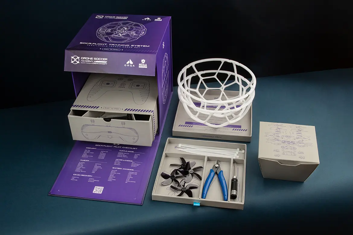 - Locate the yellow XT-30 power port which indicates the rear of the aircraft. The forward right propeller spins Clockwise (CW), select the correct CW propeller using references.